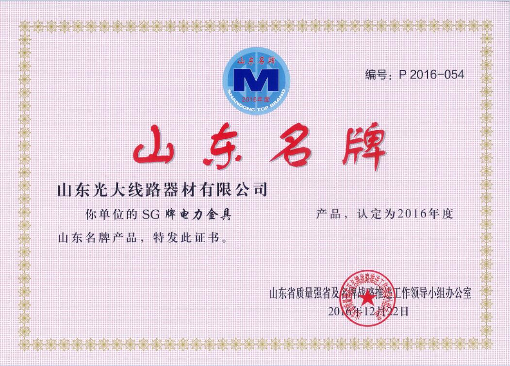 山东光大线路器材有限公司位于素有孔孟之乡礼仪之邦美称的山东省济宁经济开发区,企业占地35000平方米,总注册资本6600万元,复合绝缘子年生产能力30万支,金具年生产能力18000吨、铁件年生产能力26000吨,年销售额3.26亿。是一家集科研、生产、贸易一体化的高新技术型企业。公司主要产品有电力金具、铁附件、铁塔、220KV及以下悬式复合绝缘子和220KV及以下柱式复合绝缘子、水泥拉盘、底盘、卡盘、标志桩等。